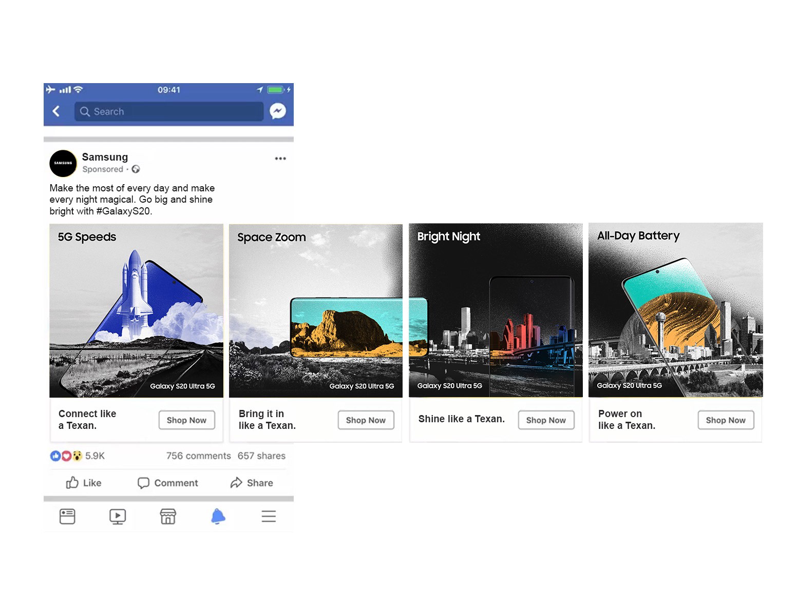 At Cheil, the marketing agency for Samsung Mobile USA, I took part in the Texas Number One campaign, localized multi-media advertisements targeting multiple consumer sectors in Texas, as well as organic social media assets across multiple channels to drive consumer engagement and sell products.