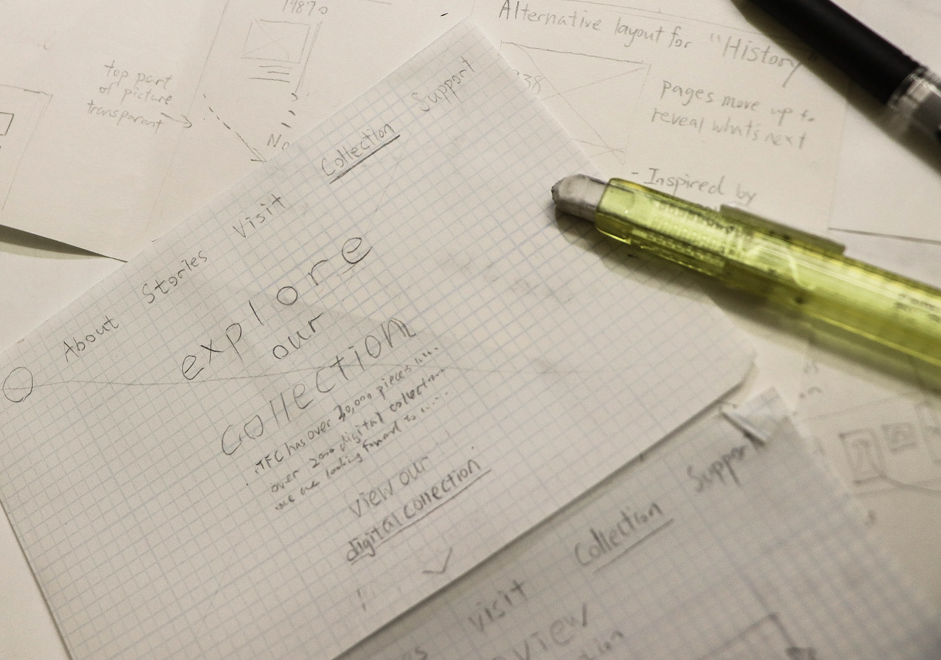 Some sketches of our wireframes and illustrations